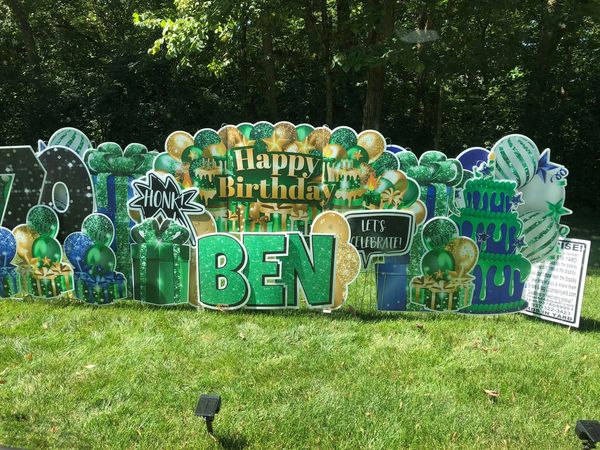 Whether it's a birthday party celebration, an anniversary, graduation, retirement, a birth, gender reveal or any day that is special to you. We have the perfect yard signs and themed displays to make it AMAZING!